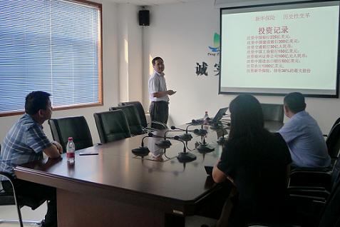 新華人壽濱州支公司總經(jīng)理劉學(xué)謙一行到我公司走訪,我公司總經(jīng)理王洪凱、副總經(jīng)理方艷艷參加了接待。劉學(xué)謙總經(jīng)理介紹了新華人壽情況,王洪凱總經(jīng)理介紹了我公司運營情況。雙方就金融理財?shù)葐栴}進(jìn)行了交流。